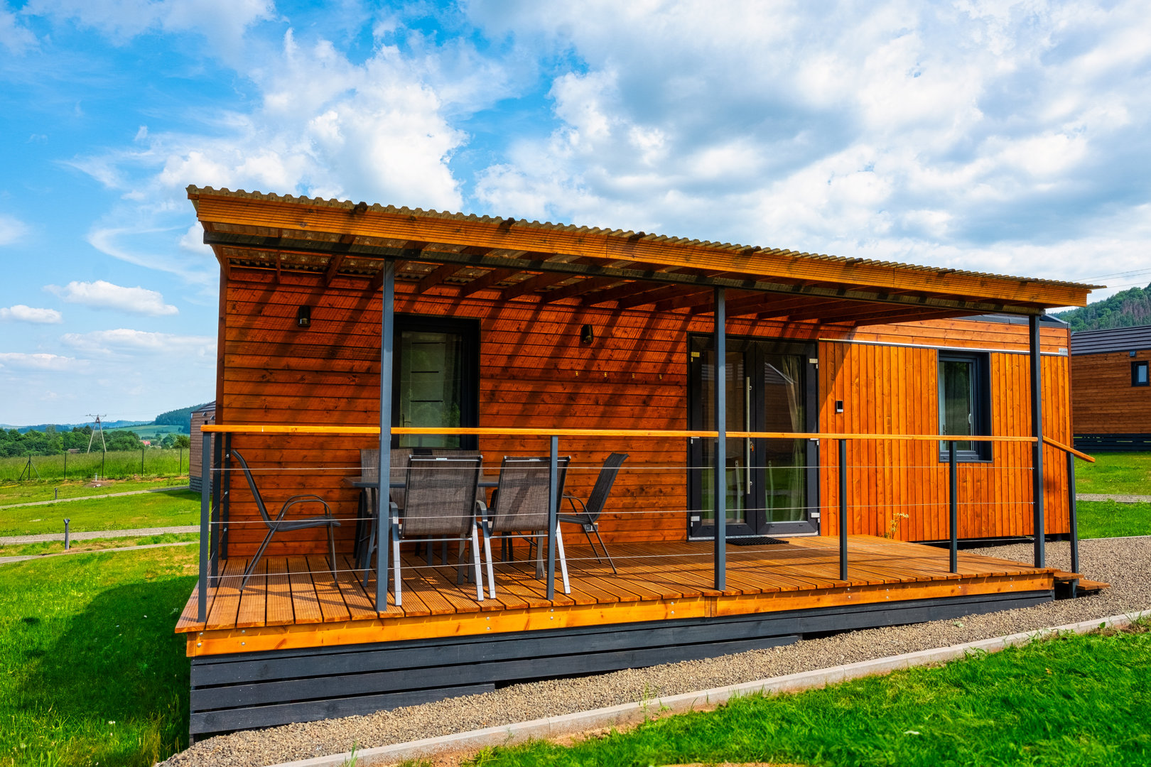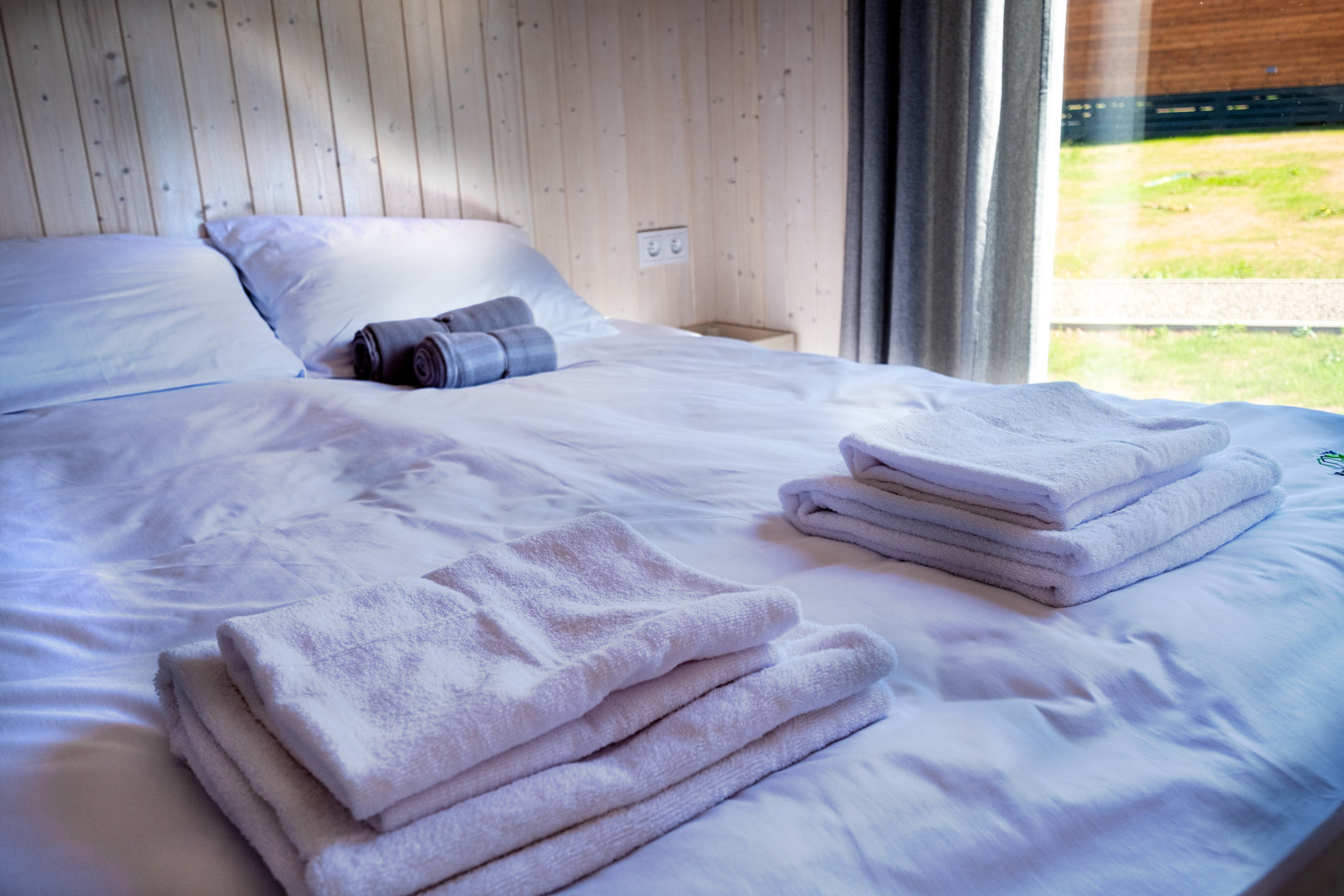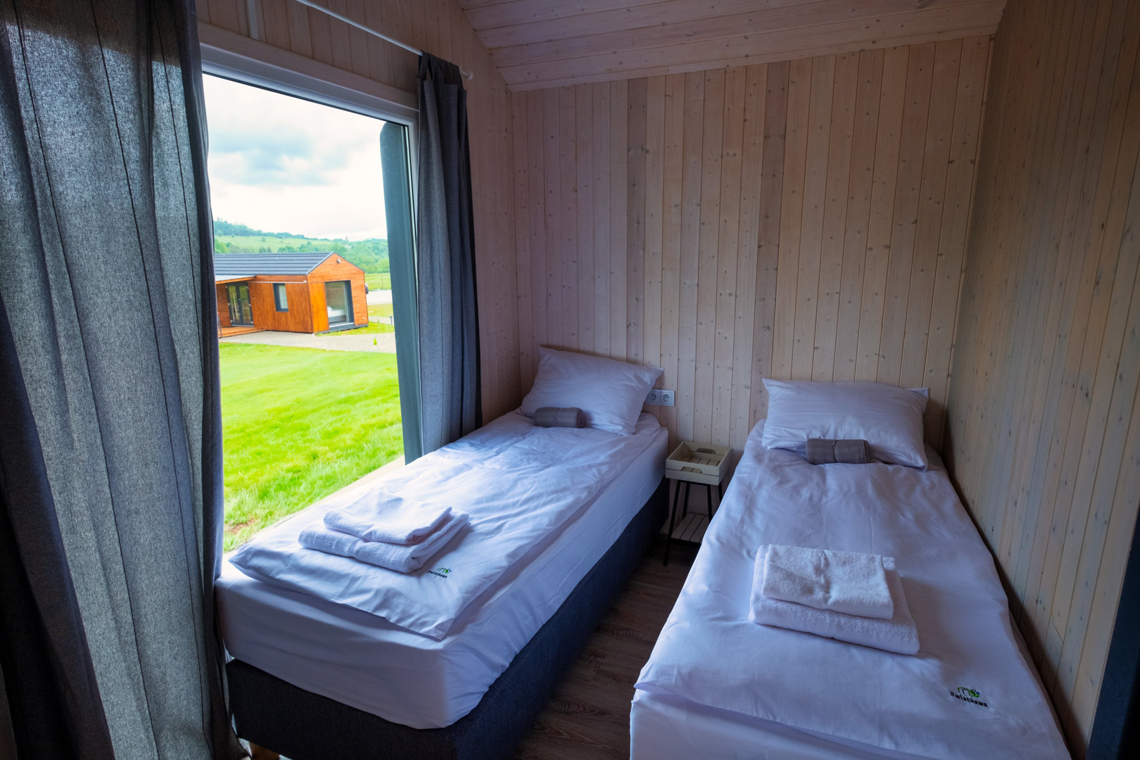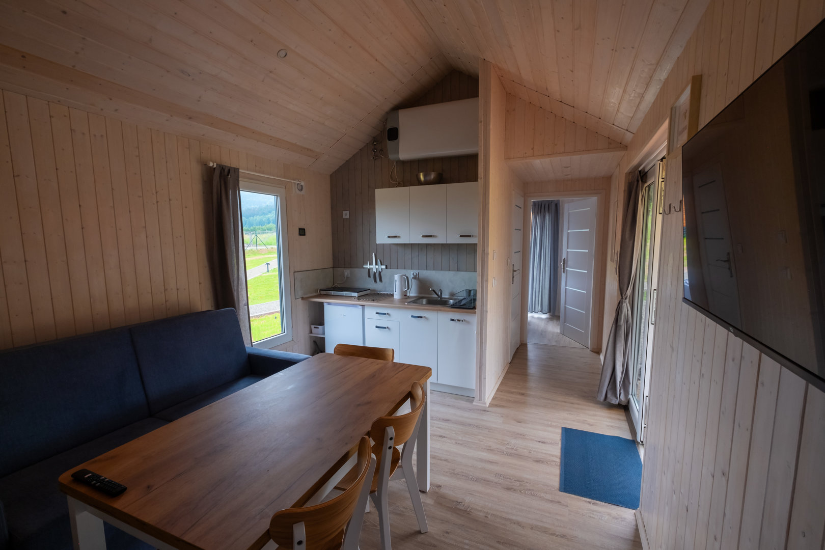 Obiekt składa się z dziewięciu całorocznych domów turystycznych o powierzchni 35m2 każdy, wyposażonych w dwie sypialnie, salon z aneksem kuchennym, przestronną łazienkę i duży zadaszony taras. Wszystkie sypialnie mają dwa pojedyncze łóżka z możliwością złączenia w jedno duże łóżko, szafę, stolik nocny oraz cichy wentylator sufitowy. W salonie znajduje się stół dla sześciu osób, krzesła, wygodna rozkładana kanapa umożliwiająca spanie dwóch dodatkowych osób, aneks kuchenny wyposażony w płytę indukcyjną, lodówkę oraz wszystkie przybory do gotowania i spożywania posiłków.
